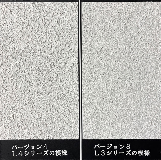 【サンプル左:スタッコヘッドカット模様(SH1) 右:スタッコ吹放し玉模様(SF1)】
